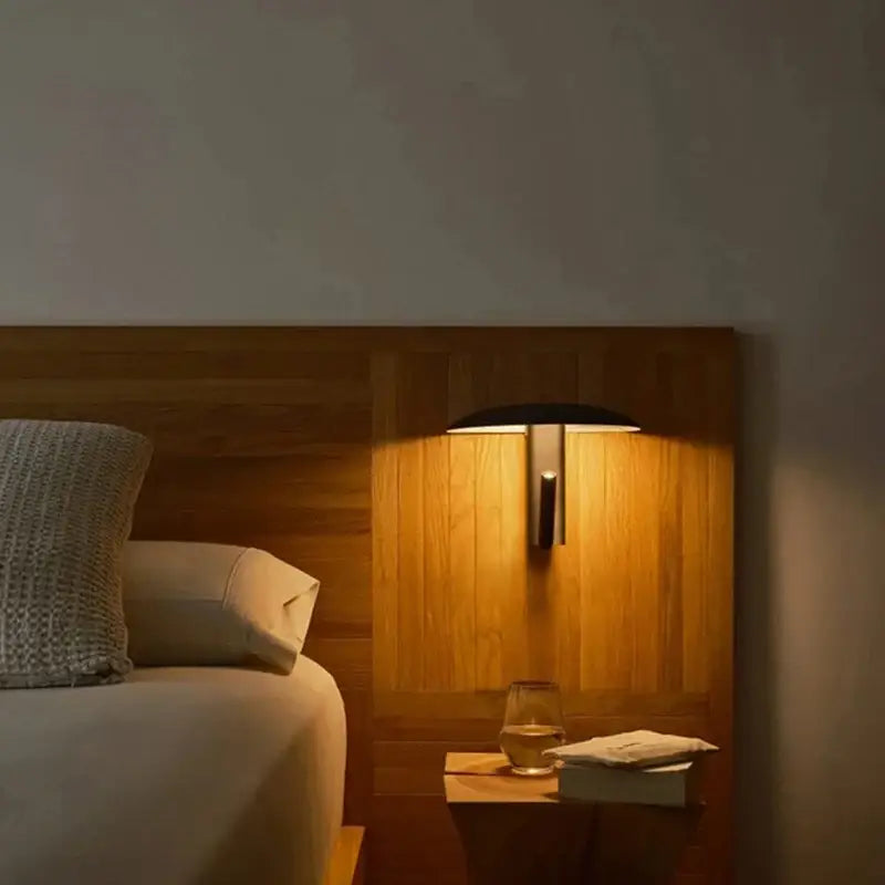 Applique murale avec liseuse orientable et abat‑jour courbé combine l’éclairage d’ambiance de l’abat‑jour avec la précision d’un spot lecture. Vous pouvez activer l’un ou l’autre, voire les deux, pour adapter l’atmosphère à chaque moment : lecture, repos, ambiance tamisée.