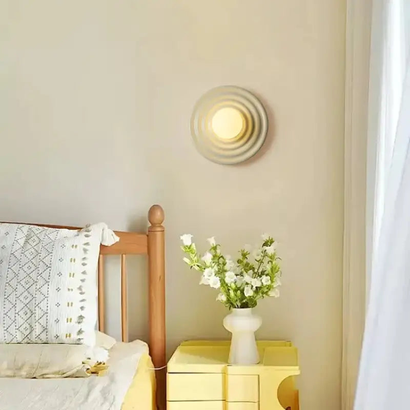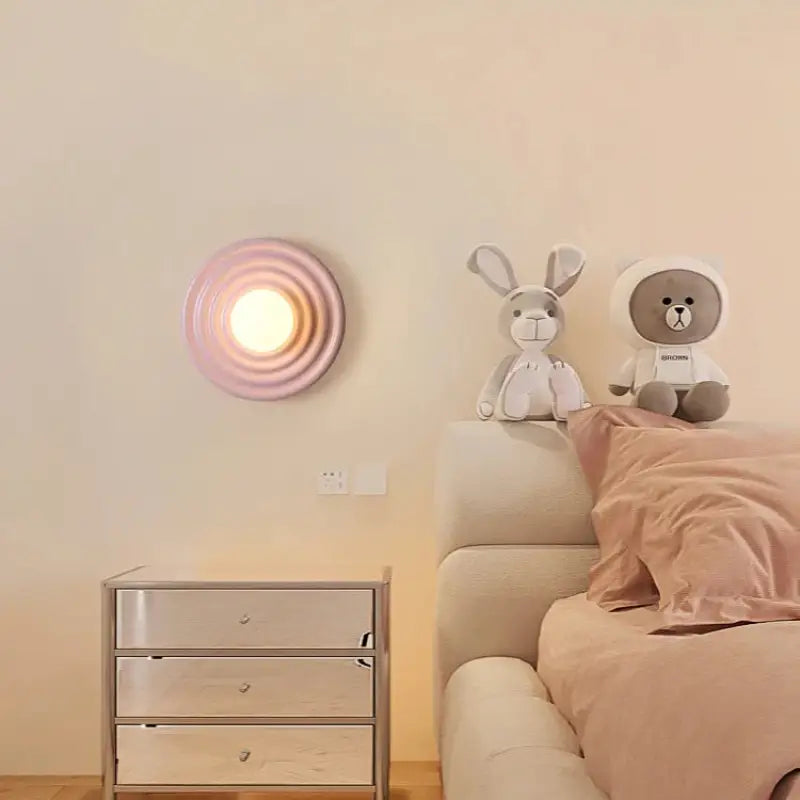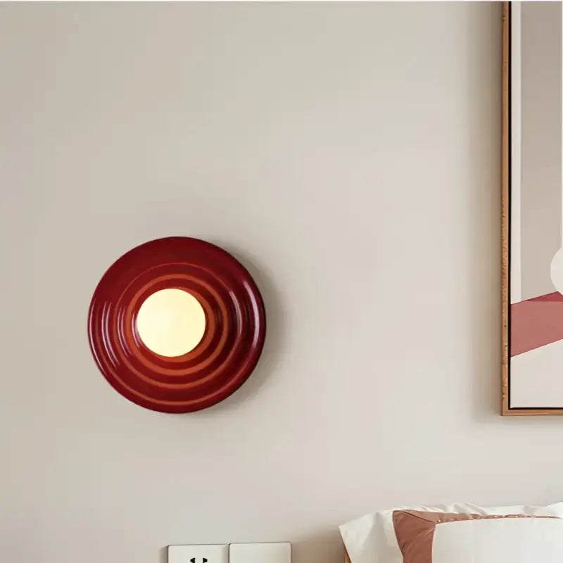 Applique murale circulaire en ondulation de différentes couleurs, design élégant et lumière douce pour une ambiance chaleureuse et moderne.