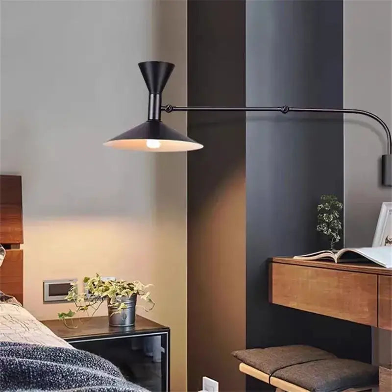Pratique et esthétique, l’applique murale design articulée style industriel moderne libère l’espace au sol et sur les surfaces, ce qui est particulièrement apprécié dans les intérieurs compacts. En remplaçant des lampes sur pied ou des lampes de table, elle permet de dégager les surfaces tout en offrant un éclairage dirigé et efficace. Cela contribue à une sensation de légèreté globale dans la pièce.