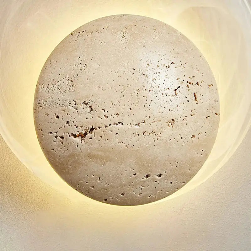 Applique murale design ronde en pierre avec éclairage led doux crée une ambiance élégante et apaisante en sublimant vos espaces avec raffinement.