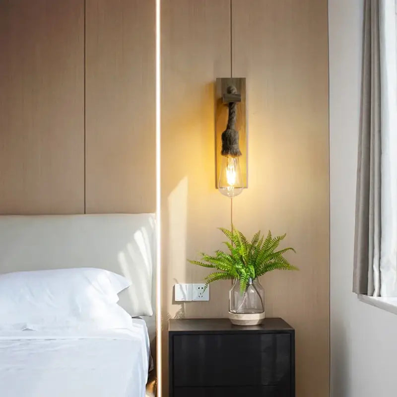 Découvrez notre applique murale en bois avec une corde de marin. Cette lampe murale artisanale évoque une ambiance chaleureuse et naturelle, idéale pour une décoration authentique.