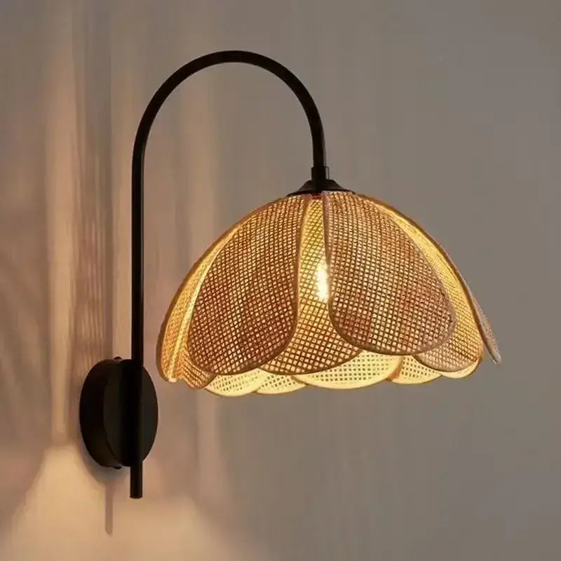 Apportez une touche naturelle et poétique à votre intérieur avec une applique murale en rotin en forme de fleur avec plusieurs pétales, idéale pour créer une ambiance chaleureuse et élégante.