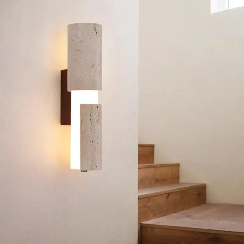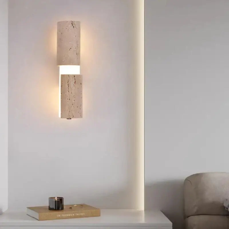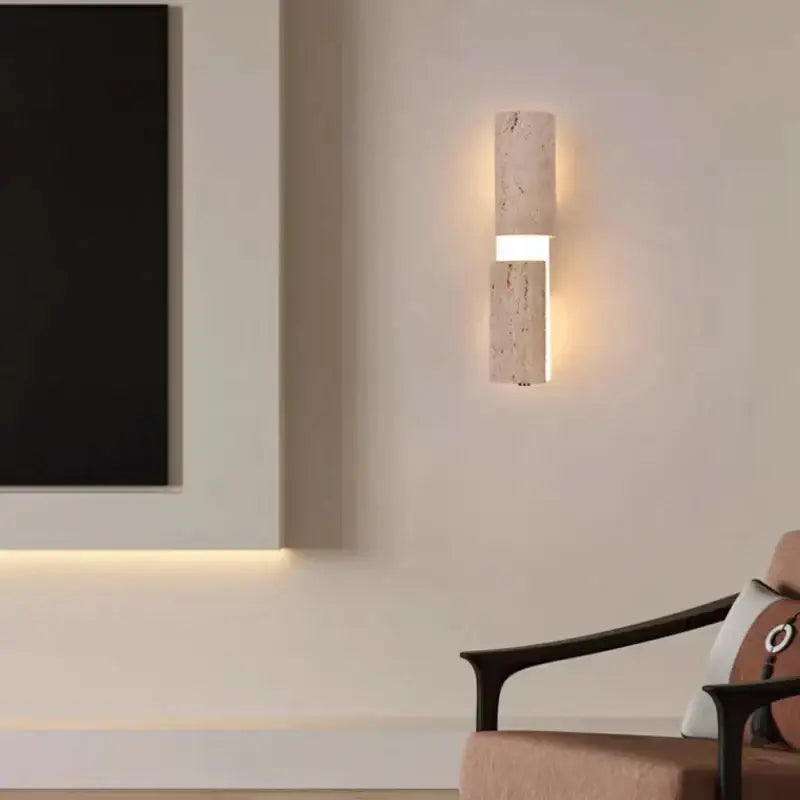 Applique Murale Travertin Moderne Éclairage Haut Et Bas : sublimez vos murs avec une lumière duale élégante et naturelle, finition travertin pour une atmosphère chaleureuse.