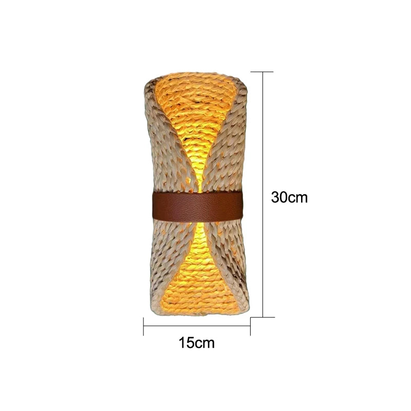 Applique Murale Tressée Naturelle Design Bohème crée une ambiance chaleureuse et bohème, diffuse une lumière douce et sublime les murs grâce à son tressage naturel.