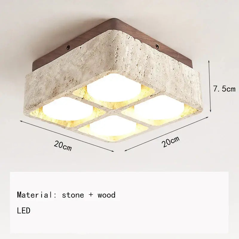 Plafonnier design carré en pierre et bois brut