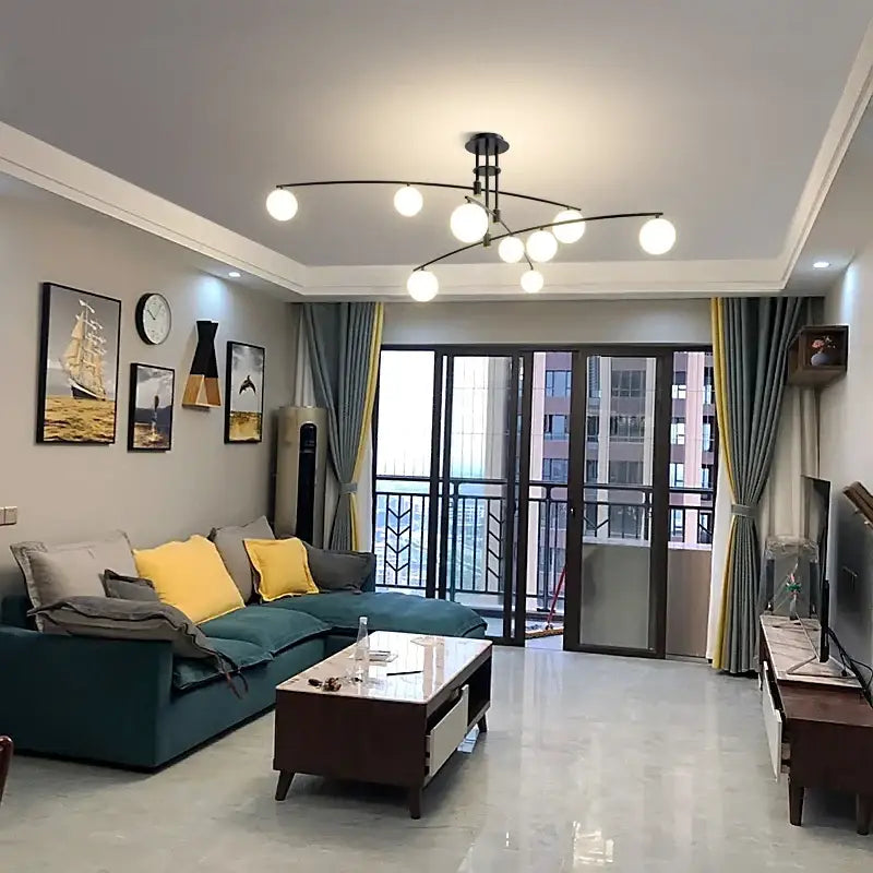 Les globes blancs diffusent une luminosité douce et homogène, idéale pour instaurer une atmosphère chaleureuse dans un salon ou une salle à manger. Répartie via les multiples bras, la lumière enveloppe l’espace sans créer d’ombres ou de points d’éblouissement, favorisant ainsi une ambiance apaisante, propice à la détente et aux échanges quotidiens .