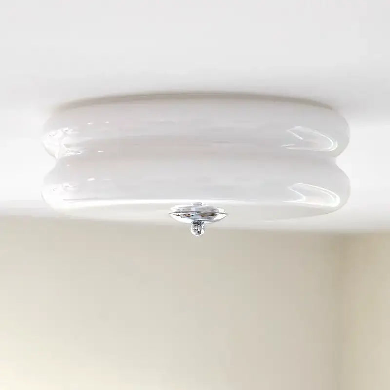Plafonnier rétro moderne en verre épuré style années 70 apportant élégance intemporelle et lumière douce pour sublimer chaque intérieur.