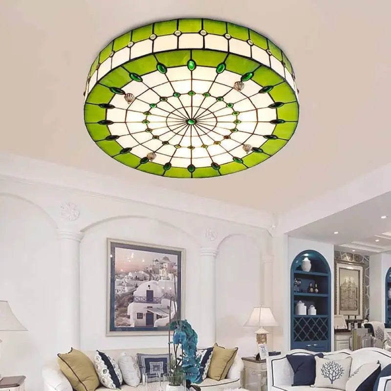 Chaque pièce de verre est soigneusement assemblée pour former un ensemble harmonieux qui capte et diffuse la lumière d’une manière douce et vibrante. Cette approche artistique est au cœur de ce plafonnier, donnant vie à des nuances délicates et des reflets fascinants à chaque éclairage.