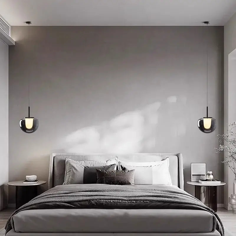 Suspension boule en verre fumé pour éclairage moderne sublime l intérieur d une luminosité douce contemporaine et un charme discret et un style épuré.