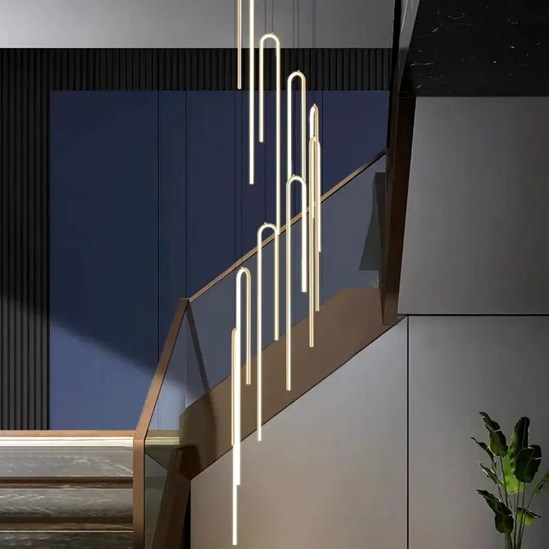 La suspension cascade cylindres dorés haut plafond moderne se distingue par son allure raffinée et sa capacité à transformer n’importe quel espace en un lieu unique. Avec son style à la fois sobre et luxueux, elle attire le regard sans en faire trop, ce qui en fait un choix idéal pour ceux qui souhaitent une décoration élégante mais équilibrée.
