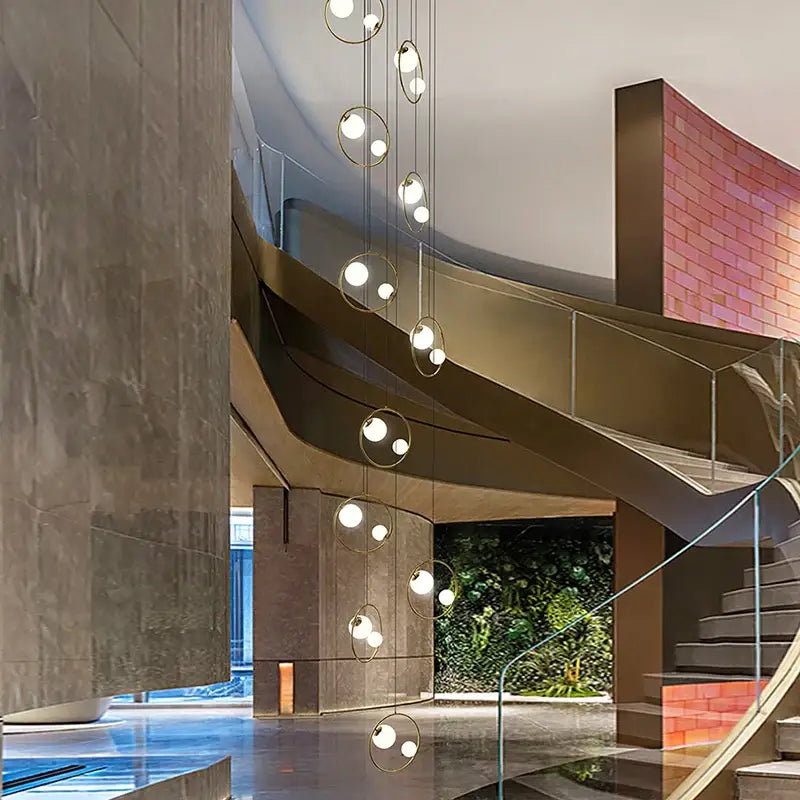 Suspension cascade LED moderne avec sphères dorées ajourées