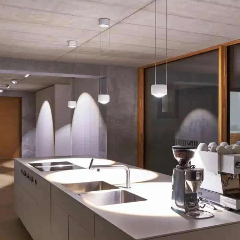 changer la configuration lumineuse devient simple grâce aux multiples niveaux proposés par cette suspension. en variant la hauteur des cylindres, on peut moduler l’atmosphère, passant d’un environnement chaleureux et feutré à un éclairage plus vif pour les moments conviviaux. cette flexibilité transforme l’installation en véritable outil de scénographie intérieure.
