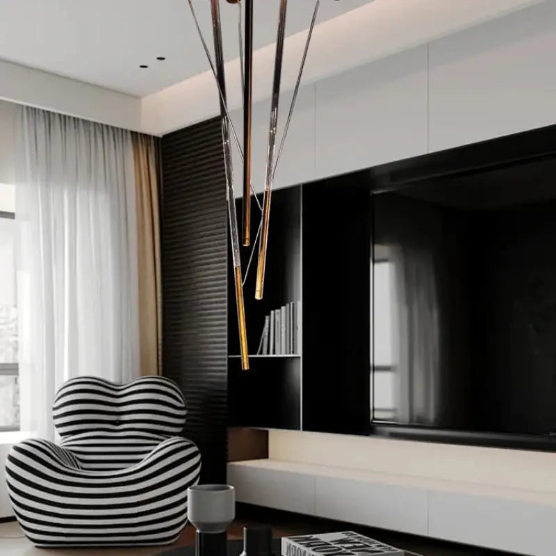 La Suspension Design Artistique À Tiges Lumineuses LED s’adapte à des environnements variés, qu’il s’agisse d’un salon contemporain, d’une salle à manger conviviale ou d’un espace de travail inspirant.