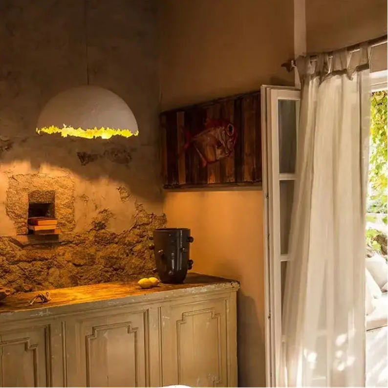 Installer cette suspension, c’est inviter une ambiance sensorielle dans la pièce. La texture visuelle des craquelures est accompagnée d’une chaleur diffuse procurée par le dôme mat. Cette combinaison agit non seulement sur l’esthétique mais aussi sur le ressenti émotionnel : on ressent immédiatement un calme délicat et une invitation à la contemplation.