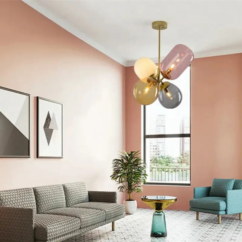 Suspension design en verre multicolore moderne élégante sublime l’espace d’une lumière artistique, créant une ambiance raffinée, colorée et inspirante.