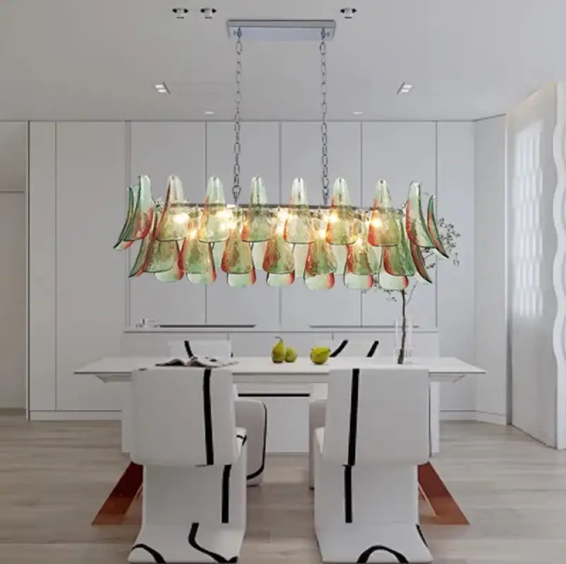 Suspension En Verre Soufflé Coloré Style Moderne Élégant incarne une lumière qui raconte une histoire, celle d’un intérieur sublimé par la beauté du verre et la magie des couleurs.