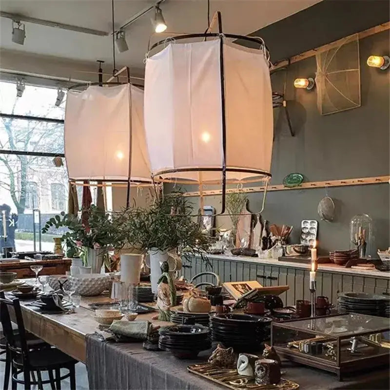 Suspension luminaire design minimaliste en tissu blanc, alliant simplicité et élégance, pour un éclairage doux et une ambiance chaleureuse dans tous les espaces.