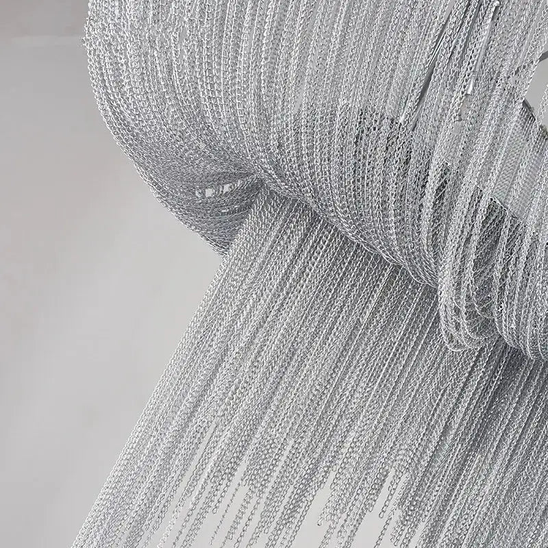 L'une des principales caractéristiques de cette suspension est son design original qui mélange modernité et élégance. Les fils métalliques argentés créent une texture fascinante, ressemblant à une cascade lumineuse, qui attire le regard dès qu'on entre dans la pièce. Ce type de luminaire est bien plus qu'un simple éclairage : c'est une véritable œuvre d'art suspendue, apportant une touche chic à votre salon, salle à manger ou hall d'entrée. La forme délicate et les lignes épurées en font un choix parfait pour ceux qui cherchent à ajouter du caractère à leur décoration intérieure.