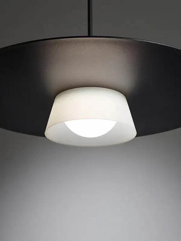 Le noir, utilisé avec justesse, accentue cette géométrie parfaite. Il dessine la forme dans l’espace, comme un trait net et assumé, tout en restant intemporel. Associé à une lumière blanche, il évite toute impression de lourdeur et conserve une grande légèreté visuelle.