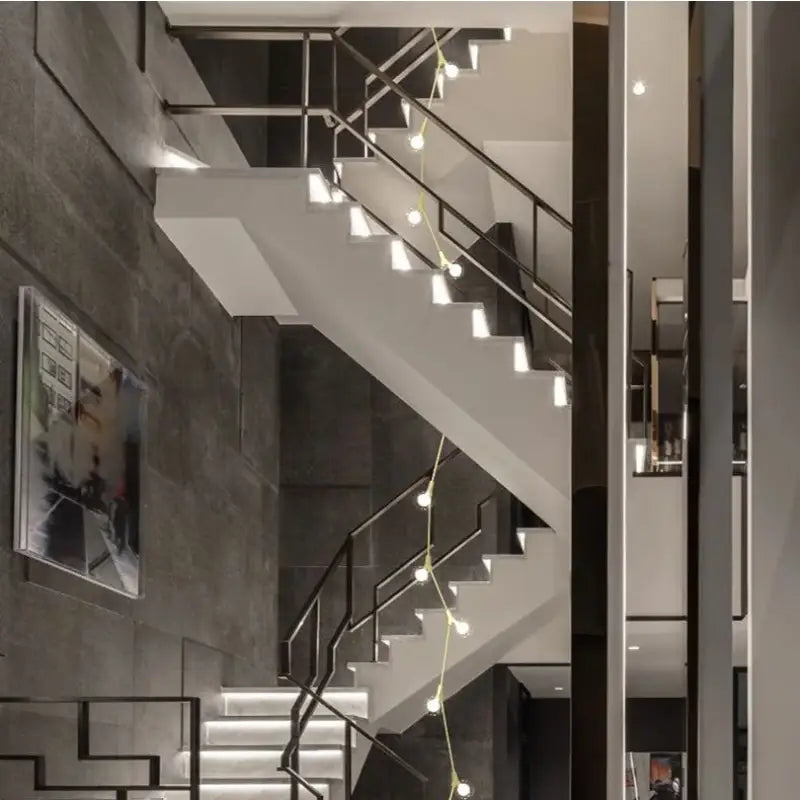 La Suspension Luminaire Verticale En Boules Opales Et Laiton ne se contente pas d’éclairer : elle sculpte l’espace et met en valeur les volumes. Elle joue avec la hauteur, les lignes verticales, et les matériaux environnants pour transformer une pièce simple en un espace travaillé et accueillant.